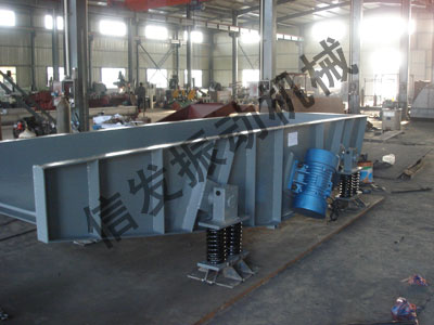 ??機器由箱體、振動電機、柵條排和彈簧減振裝置等四部分組成。箱體為一剛性結構,內測 與物料接為雙臺階式,間隙呈楔形以利徘料,柵條材質為耐磨高錳鋼。減振裝置采用優(yōu)質螺旋 彈簧。